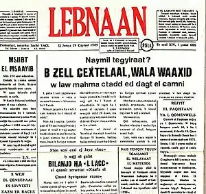 |CitationClass=تم تجاهله (مساعدة)CS1 maint: numeric names: قائمة المؤلفون (link) - Kadmous.org: اللغة اللبنانية بالحرف اللاتيني بين رسائل الهاتف والعقل الالكتروني…وسعيد عقل نسخة محفوظة 23 يوليو 2012 على موقع واي باك مشين.
