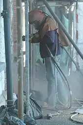 السفع الرملي أو الكشط بالرمل (بالإنجليزية: Abrasive blasting) هو عملية دفع تيار من المواد الكاشطة (كالرمل) بقوة على سطح مراد كشطه تحت ضغط مرتفع لتنعيم السطح خشن أو تخشين سطح أملس أو تشكيل سطح أو إزالة ملوثات للسطح (كالصدأ مثلا). يتم استخدام سائل مضغوط أو هواء مضغوط عادةً، بواسطة قوة الطرد المركزي لدفع مادة السفع. حصل بنجامين تشو تيلغمان على براءة اختراع أول عملية كشط في 18 أكتوبر 1870.[1] هناك العديد من المتغيرات الداخلة في عملية الكشط، حيث يمكن استخدام مواد كاشطة مختلفة، هناك مواد شديدة الكشط، بينما البعض الآخر أخف. أكثر المواد كشطا هي السفع بالخردق (الرصاص المعدني) والسفع الرملي (بالرمل). تشمل المواد الكاشطة المعتدلة السفع بالخرز الزجاجي والبلاستيك أو قشور الجوز و أكواز الذرة. يمكن لبعض هذه المواد أن تسبب الحساسية للأفراد الذين لديهم حساسية من هذه المواد.[2]