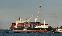 سفينة حاويات هي سفينة بضائع تقوم بتحميل كامل حمولتها داخل حاويات بحجم شاحنة، في تقنية تسمى النقل بالحاويات في تقنية تسمى النقل بالحاويات. إنها وسيلة شائعة لنقل البضائع التجارية متعدد الوسائط وتنقل الآن معظم البضائع البحرية غير السائبة.