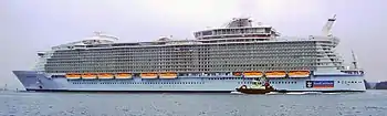 فأكبر السفن السياحية في العالم هي سفن شركة رويال كاريبيان إنترناشنال و سفن أوسيس أوف ذا سيز و سفن آليرز أوف ذا سي.