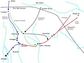 ثم سيطرت قوات واي على هان زونغ في 22 أكتوبر 262 بقيادة الجنرال دينغ أي وزونغ فو وفتح الطريق أمام تشينغ دو فجهز سيما زاو الجيش الإمبراطوري ليقوده بنفسه وبعد انسحاب قوات شو بقيادة جيانغ واي خليفة تشوغ ليانغ أصبحت شو ضعيفة جدا بعد أن كانت فيما سبق على بعد خطوات قليلة من توحيد الممالك الثلاث وإعادة إحياء مملكة هان وبعد فتح هان زونغ ونان يانغ فقدت شو الكثير من الأراضي
