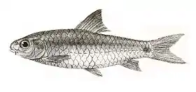 سكارليت بانديد بارب (بالإنجليزية: scarlet-banded barb) (اسمها العلميPuntius amphibius) هي سمكة زينة من فصيلة الشبوطيات موطنها الهند وسيريلانكا والهامالايا، يصل حجمها إلى 3 انش أو 7.5 سم سم وتتعدى على النباتات والحيوانات. تحتاج لدرجة حرارة من 74-79 فهرنهايت أو 23-26 مئوية، والحموضة من 6-7. يكون لون الجسم فضي مع بقعة سوداء فوق الزعنفة الصدرية. يمتلك الذكر شريط أحمر ناصع بشكل أفقي من الرأس إلى الذيل.