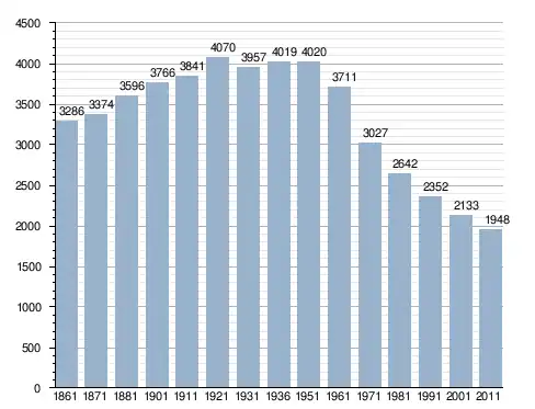 في سنة 1861 بلغ عدد السكان 3٬286 نسمة، وتطور العدد ليصل في سنة 2011 لـ 1٬948 نسمة.