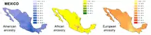 |CitationClass=تم تجاهله (مساعدة) - Wang, Sijia; Ray, Nicolas; Rojas, Winston; Parra, Maria V.; Bedoya, Gabriel; Gallo, Carla; Poletti, Giovanni; Mazzotti, Guido; Hill, Kim (21 March 2008). "Geographic Patterns of Genome Admixture in Latin American Mestizos". PLOS Genetics. 4 (3): e1000037. doi:10.1371/journal.pgen.1000037. PMID 18369456. الوسيط