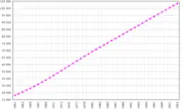 |CitationClass=تم تجاهله (مساعدة) - "Tasa de crecimiento media anual de la población, 1950 a 2005". Inegi.org.mx. مؤرشف من الأصل في 27 أغسطس 2018. اطلع عليه بتاريخ 29 أغسطس 2017. الوسيط