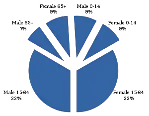 لا للفئات العمرية موزعة بالتساوي في مختلف أنحاء البلاد، مع وجود بعض المناطق الشباب والأطفال كثير[18] وبعض المناطق وجود أعداد كبيرة من كبار السن.[19]