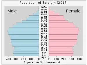 سكان بلجيكا، (بالإنجليزية: Demographics of Belgium)، (بالهولندية: Nationaal Instituut VOOR Statistiek)، هذه المقالة هي عن الخصائص الديمغرافية لسكان بلجيكا، بما في ذلك العرق، ومستوى التعليم، وصحة السكان، والحالة الاقتصادية، والانتماءات الدينية والجوانب الأخرى للسكان. جميع الأرقام هي من المعهد الوطني للإحصاء ، ما لم يرد خلاف ذلك.[1]