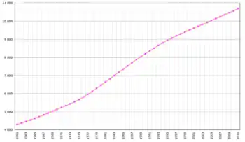 | مجموع السكان | 1500.19 | 1900.0 | 2600.0 | 3783,2 | 4533,3 | 5588,2 | 6966,2 | 8785,7 | 9442,9 | 9910,872 | 10982,8 |