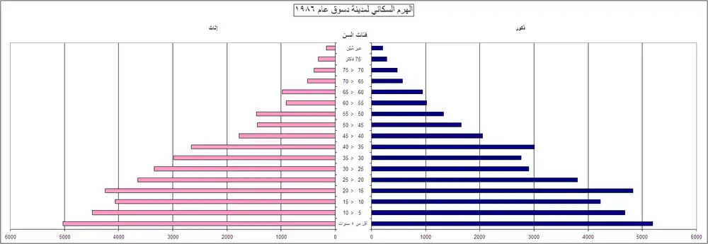 في فترة قدرها عشر سنوات، قفز عدد سكان مدينة دسوق من 78,316 نسمة عام 1986 إلى 91,318 نسمة عام 1996، [12] أي بزيادة قدرها 13,002 نسمة. ومع إجراء أول إحصاء رسمي في الألفيّة الجديدة عام 2006،[13] أصبحت دسوق من المدن التي تخطّت حاجز المائة ألف نسمة، ليصبح عدد سكانها 106,827 نسمة،[14] بزيادة قدرها 15,509 نسمة، مقارنة بعدد سكان المركز الذي أصبح 331,701 نسمة في نفس التعداد.[15]