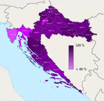 |CitationClass=تم تجاهله (مساعدة) - "Prvi rezultati" [النتائج الأوليّة] (باللغة الكرواتية). المكتب الكرواتي للإحصاء. مؤرشف من الأصل في 3 مايو 2019. اطلع عليه بتاريخ 28 نوفمبر 2011. الوسيط