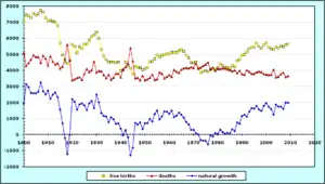الإحصاءات الحيوية منذ عام 1900[3]