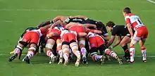 سُمِّيت سْكْرَمْ نسبة إلى طريقة لإعادة بدأ لعبة الرغبي بعد مخالفة بسيطة، فيتم تنفيذ العملية برمتها من قبل فريق واحد متعدد الوظائف عبر مراحل متداخلة متعددة، حيث يحاول الفريق "قطع المسافة كوحدة واحدة، وتمرير الكرة ذهابا وايابا".
