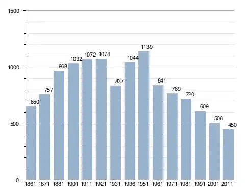في سنة 1861 بلغ عدد السكان 650 نسمة، وتطور العدد ليصل في سنة 2011 لـ 450 نسمة.