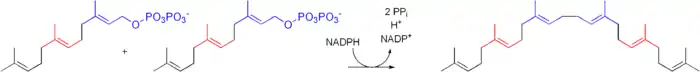تمثيل مبسط لطريق اصطناع الستيرويد بوجود كل من المركبات الوسيطة: بيروفوسفات إيزوبنتيل IPP، بيروفوسفات ثنائي ميثيل أليل DMAPP، بيروفوسفات غيرانيل GPP، والسكوالين. بعض المركبات الوسيطة لم تعرض
