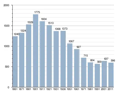 في سنة 1861 بلغ عدد السكان 1٬240 نسمة، وتطور العدد ليصل في سنة 2011 لـ 596 نسمة.