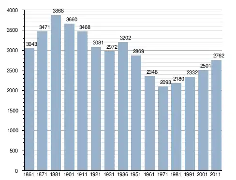 في سنة 1861 بلغ عدد السكان 3٬043 نسمة، وتطور العدد ليصل في سنة 2011 لـ 2٬762 نسمة.