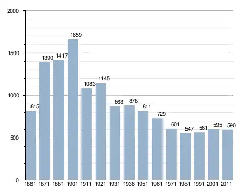 في سنة 1861 بلغ عدد السكان 815 نسمة، وتطور العدد ليصل في سنة 2011 لـ 590 نسمة.
