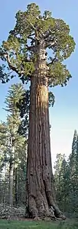 - السكوية العملاقة Sequoiadendron giganteum شجرة تنمو طبيعياً في سييرا نيفادا (الولايات المتحدة) في كاليفورنيا.