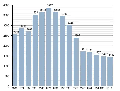 في سنة 1861 بلغ عدد السكان 2٬553 نسمة، وتطور العدد ليصل في سنة 2011 لـ 1٬442 نسمة.
