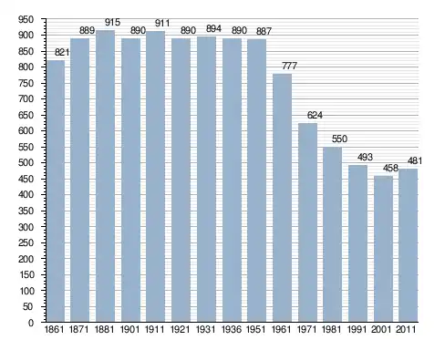 في سنة 1861 بلغ عدد السكان 821 نسمة، وتطور العدد ليصل في سنة 2011 لـ 481 نسمة.