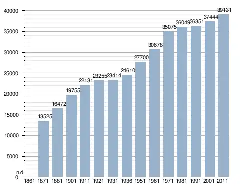 في سنة 1871 بلغ عدد السكان 13٬525 نسمة، وتطور العدد ليصل في سنة 2011 لـ 39٬131 نسمة.