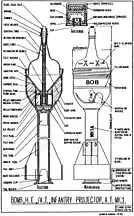 - مارك الرابع ، يوليو 1944 ، تعديل البناء لتقليل التشظي الخلفي و "الانفجار الخلفي" لانفجار الرأس الحربي.