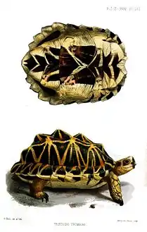 ![]() رسم للسلحفاة العنكبوتية يعود إلى عام 1886 | |