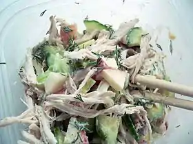 سلطة الدجاج هي السلطة التي يعتبر فيها الدجاج المكون الأساسي لها، كما يمكن أيضاً أن تضاف فيها بعض المكونات الأخرى والشائعة مع أطباق السلطة وهي: المايونيز ووالبيض المسلوق والكرفس ووالفلفل والمخللات بجميع أنواعها والخردل. في الولايات المتحدة " سلطان الدجاج" تشير إلى أي سلطان أضيف لها الدجاج أو نوع معين من السلطة خلط معه لحم الدجاج المفروم ويوضع فوقه المايونيز أو صلصة السلطة. أما سلطان التونة وسلطان البيض فقد تقدما مع الخس والطماطم والأفوكادو أو مزيج من هذه المكونات، كما يمكن وضعها في الساندويتشات. وعادة يتم عمل ذلك ببقايا الدجاج المعلبة. قد نشير إليها أيضا باسم سلطان الحديقة المقلية أو المشوية أو سلطان قطع الدجاج المشوي مع (قطع البصل) الموضوع على القمة. في أوروبا وآسيا يمكن تقديم السلطة بصلصات مختلفة أو بدون أي صلصلة، كما يمكن أيضا أن تختلف مكونات السلطة ونستبدل الخضروات والأعشاب الشعبية بالمعكرونات والكسكس والشعيرية أو الأرز. قد قدم شكل سلطان الدجاج الأمريكية من قبل تون للحوم في ويكيفيلد، رود آيلاند في عام 1863 ميلادي. المالك الأصلي، ليام جراي، قد خلط بقايا الدجاج مع المايونيز ونبات الطرخون والعنب فأصبح هذا طبق شعبي الذي حولته محلات اللحوم لتجعله شهيا أكثر.