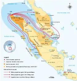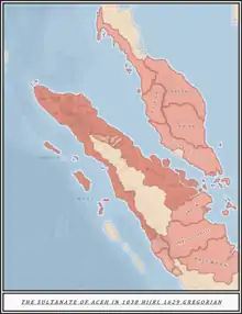 ![]() توسع سلطنة اتشيه في عهد إسكندار مودا ، 1608-1637. | ||||||