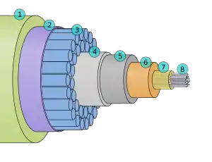 تركيب كابل حديث بحري لنقل الإشارات بين قارتين عبر البحر (من الداخل غلى الخارج):