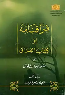 غلاف «فراقنامه»، تحقيق شعبان طرطور، القاهرة:دار الكتب والوثائق القومية، 1431 هـ.