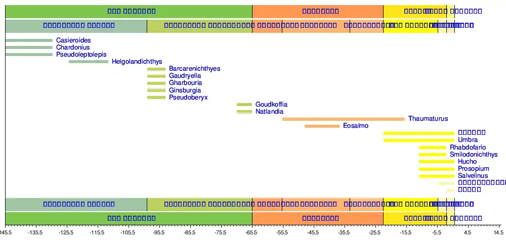 تنقسم السلمونيدا (والسلمونيفورمز) إلى ثلاث تحت فصائل ونحو عشرة أجناس:[2]