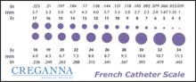 يكون حجم الفرينش ثلاثةُ أضعاف القطر بالملليمتر. يبلغ القطر الخارجي للقسطرة المُستديرة التي تبلغ 1 فرينش من 1 إلى 3 ملم،[3] وبالتالي يمكن تحديد قطر القسطرة الدائرية بالملليمتر بقسمة الحجم الفرنسي على 3.
