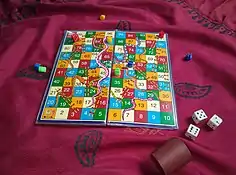 - لوحة السلم والثعبان (مصنوعة في المنزل أو متوافرة متواجدة في المحلات والمكاتب)
