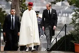 ![]() ولي العهد الأمير مولاي الحسن بجلباب مغربي أصيل تحت سلهام أبيض | ||||||||||