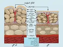|CitationClass=تم تجاهله (مساعدة)صيانة CS1: أسماء متعددة: قائمة المؤلفون (link) - Terranova F, Berardesca E, Maibach H (2006). "Cellulite: nature and aetiopathogenesis". Int J Cosmet Sci. 28 (3): 157–67. doi:10.1111/j.1467-2494.2006.00316.x. PMID 18489272. الوسيط