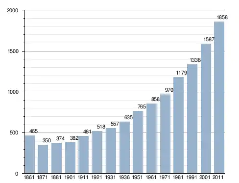 في سنة 1861 بلغ عدد السكان 465 نسمة، وتطور العدد ليصل في سنة 2011 لـ 1٬858 نسمة.