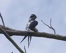 - سمامة الشجر رمادية المؤخرة (Grey-rumped Treeswift)، هيميبروكني لونجيبينيس (Hemiprocne longipennis)