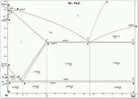 تتميز تلك السبائك الحديدية المكونة من الحديد وكربون (بنسبة أقل من 6% كربون) بأنها نظام أصهري ؛ بمعنى أنها في درجات حرارة معينة تسمى نقطة يوتكتيكية ، تكون موجودة في خليط أطوار تسمى بالتالي "مزيج يوتكتويد" يعرف ب ليديبوريت في الحديد الزهر (نسبة كربون 2-6%) ، ويوجد في الفولاذ (برليت ونسبة الكربون فيه أقل من 2%) . عرف خليط لها،
