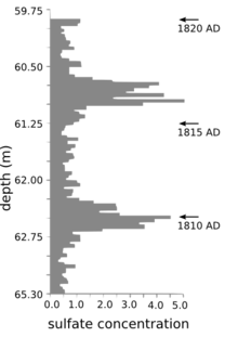 |CitationClass=تم تجاهله (مساعدة) - Dai, Jihong; Mosley-Thompson, Ellen; Thompson, Lonnie G. (1991). "Ice core evidence for an explosive tropical volcanic eruption six years preceding Tambora". Journal of Geophysical Research: Atmospheres. 96 (D9): 17, 361–17, 366. Bibcode:1991JGR....9617361D. doi:10.1029/91jd01634. S2CID 8384563. مؤرشف من الأصل في 17 يناير 2021. الوسيط