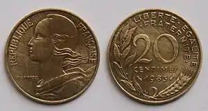 | 20 سنتيم الفرنسية مع ماريان على الوجه. | |