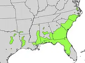 ينتشر هذا النوع في معظم مناطق جنوب شرق الولايات المتحدة.[2]