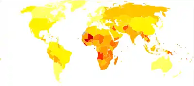 - "Mortality and Burden of Disease Estimates for WHO Member States in 2002". World Health Organization. 2002. مؤرشف من الأصل (xls) في 6 أبريل 2020. الوسيط