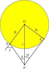 يظهر في الشكل على الجانب بالنسبة لمراقب خارج الغلاف الجوي النجمي P وترى شدة الإضاءة من الزاوية θ والتي ستكون تابع لزاوية السقوط ψ