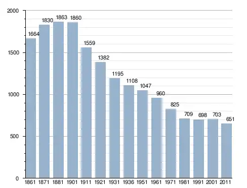 في سنة 1861 بلغ عدد السكان 1٬664 نسمة، وتطور العدد ليصل في سنة 2011 لـ 651 نسمة.