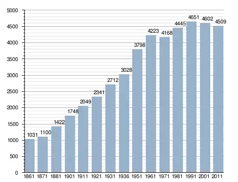 في سنة 1861 بلغ عدد السكان 1٬031 نسمة، وتطور العدد ليصل في سنة 2011 لـ 4٬509 نسمة.