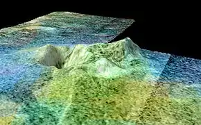 خريطة ألوان زائفة ثلاثية الأبعاد لسوترا پاتيرا وجبل دووم.