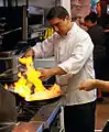 سوتيه Sautéing (UK /ˈsoʊteɪ.ɪŋ/, US /soʊˈteɪ.ɪŋ,_sɔːʔ/; fromالفرنسيةsauté [sote] , meaning "هو فعل في اللغه الفرنسيه وحرفيآ يعني "يقفز"" [1] جاءت الكلمة مشابهة لما تفعله بالمكونات المستخدمة: عندما تقوم بتقليب الخضراوات في المقلاة فأنت تجعل الخضروات ومكعبات اللحم تقفز في القدر الخاص بك أو بالتحديد أكثر، تقوم بقذفهم علي قطعه صغيره من الزبدة، الدهن، أو الزيت. وأحسن وعاء لهذه العملية هو "sautoir" - قدر غويط مصنوع من حديد صب أو فولاذ غير قابل للصدأ ذات حافه عاليه. فهي تمنع وقوع الخضروات أو اللحم علي الأرض أثناء عملية القذف أو أثناء الطهي. تعتمد هذه الطريقة في الطبخ على استخدام كمية قليلة جدا من الزيت أو الزبد لطهي على نار عالية، وتكون هذه الطريقة مخصصة لطبخ السريع لمواد تتطهى بسرعة مثل قطع اللحم الصغيرة أو الخضراوات المقطعة أو تحميص البصل الناعم وغيرها.