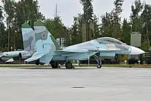 ![]() سوخوي إس يو-27 تابع لفريق فرسان روسيا للاستعراض الجوي. | ||||