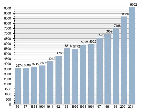في سنة 1861 بلغ عدد السكان 3٬574 نسمة، وتطور العدد ليصل في سنة 2011 لـ 9٬602 نسمة.